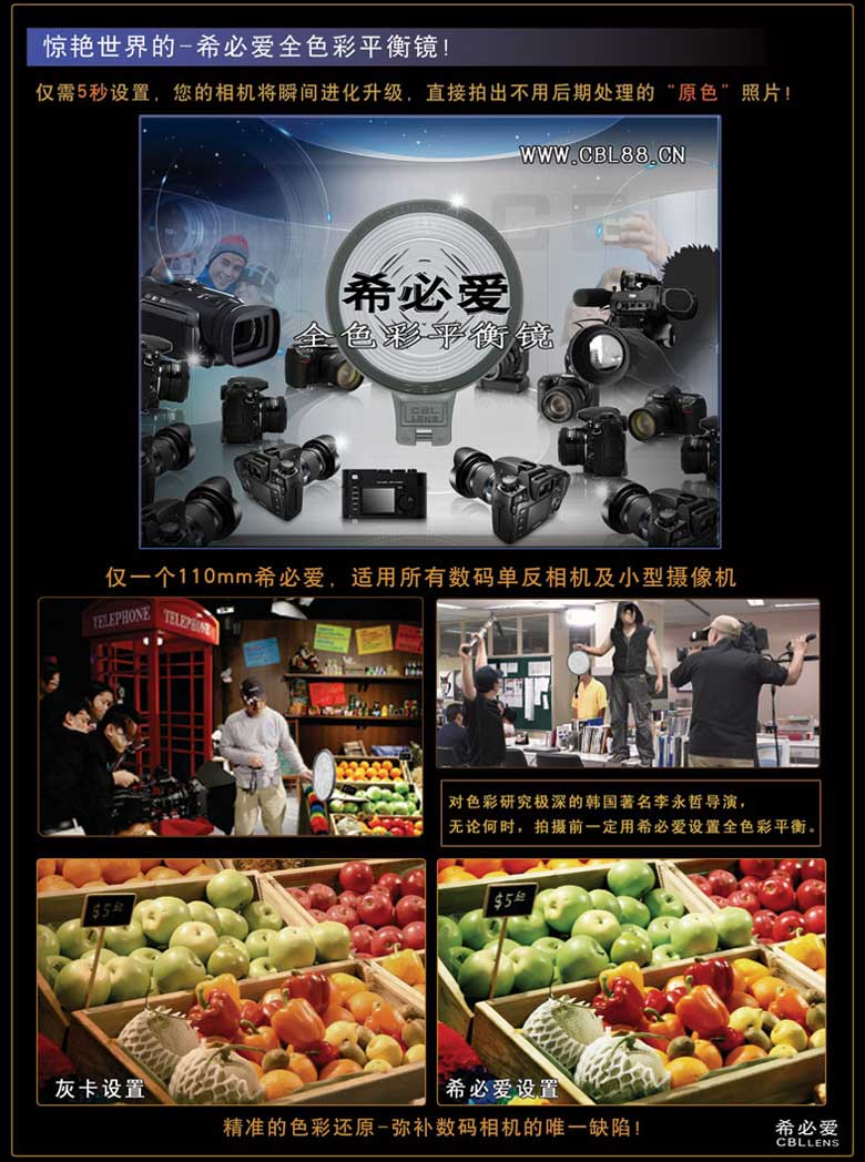 ![]() 仅1套希必爱全色彩平衡镜, 可适用所有相机.